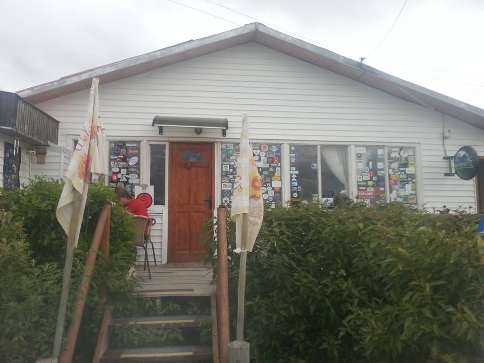 Torres del Paine to Punta Arenas today. BIG winds blowing all the time. When we set off there was a hint of snow and it finally started after Puerto Natales. The open vintage cars had it blowing straight through under the hood and they were freezing. One big squall hit us and bowed the doors out enough to operate the courtesy light switch. Never had that happen before. We all stopped at the little cafe in the photo for a time control and a bite. The two girls running the show were completely inundated (about six tables and 100 hungry rallyists) and I think everyone was satisfied by the best squash soup and steak sandwiches this side of Antarctica.