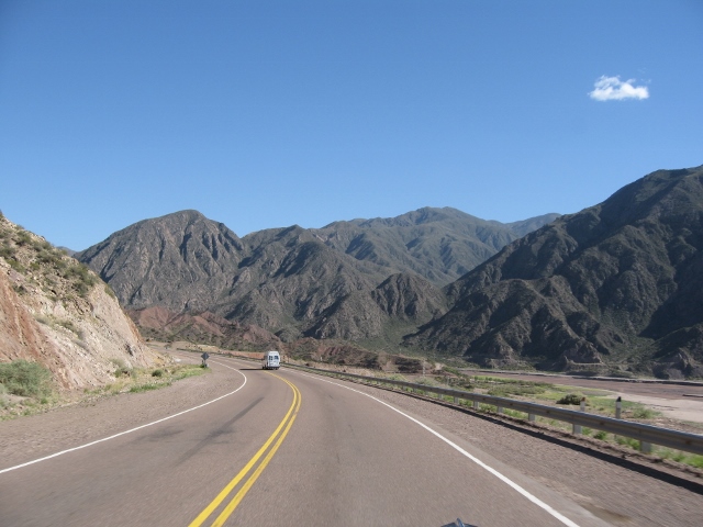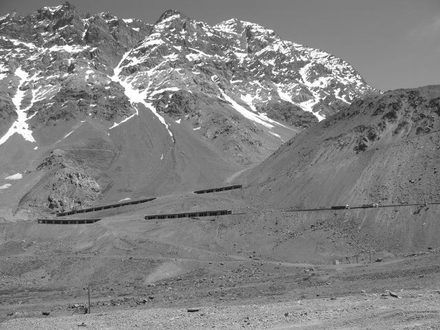At last we’re out of Argentina and into Chile. Today’s drive was worth all the hassles of getting the car here and all the motorway slog. It was a longish drive on good roads but our first sight of the Andes proper was just 10km out of town. In half an hour we climbed from 2,000 ft to 5,000 ft. This is the main truck route between Chile and Argieland so the road was quite badly rutted in places but in general we were able to keep an average of 60 to 65 mph.