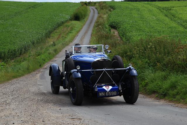The route took us from Woodcote Park in Surrey to Edinburgh and back again in a week. As much as possible the route was on very minor B roads and only used main highways where there was absolutely no other alternative. Unfortunately we had to use one stretch of motorway from Chester to Preston in Lancashire but apart from that we enjoyed glorious driving through the villages and by-ways of rural England, The weather was mostly good, apart from some dampness in the North East and at Historic Bicester. The venues we visited for either accomodation or driving tests were without exception absolutely wonderful. It was a pretty intense event so we didn’t have time to keep a FaceBook blog going, let alone take many photographs. The text below is taken from the organiser’s web page and the pictures were given to us by the official cameraman, Tony Large.