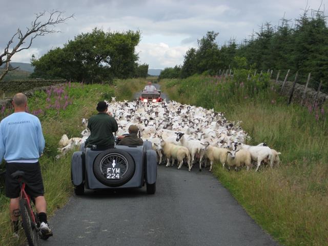 After Durham Dales, Bowes Museum at Barnard Castle was a coffee halt and time control, once again, many people turned out to see what has to be the finest selection of pre 1940 vehicles assembled in the country. Bowes is an amazing place, the artefacts and displays are superb, the highlight is the Swan Automaton which plays daily at 2p.m. It is a pure joy to see, she rides on a wave of silver with several small fish leaping out of her way. Fully refreshed, a test ensued at Cliffe Hall; this led on to a run over Osmotherley Moor, the regularity named Hambleton Hills. A breath taking view over the grouse moors and hills in the distance gave way to tight, nadgery corners that were tricky to negotiate. Running down to the end of the regularity at Caydale Mill Ford took a steady hand, with steep drops to the side and little room for error.